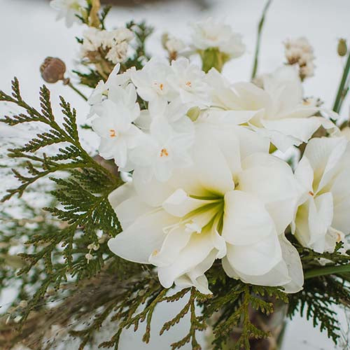 The flowers and foliage that make up each delivery vary based on the seasons. Winter bouquets are lush with amaryllis, paper-whites, hellebore, winter-blooming flowers and foliage, indoor-forced bulbs, CA/OR-grown flowers, and dried flowers and foliage from the previous summer. Spring bouquets and arrangements are brimming with tulips, fragrant daffodils, anemones, ranunculus, spring flowering branches, peonies, sweet peas, and various spring foliage. Summer bouquets and arrangements are reminiscent of wild flowers full of bright posies of dahlias, cosmos, zinnias, sunflowers, snapdragons, asters, summer-blooming vines and perennials, and scented herbal foliage. Autumn bouquets highlight the sumptuous textures of heirloom chrysanthemums, amaranth, dahlias, branches of berries, fall-tinged foliage, and seed pods.