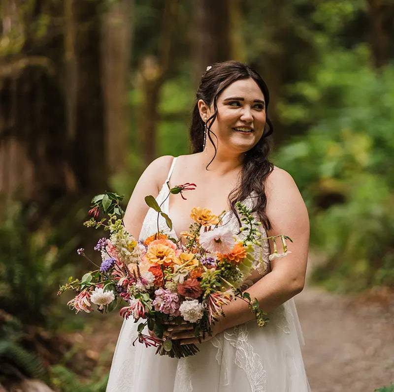For Adventure Elopements: Your bouquet comes in a vase of water with care instructions and a trail care kit with a hydrating wrap, rubber bands, a compostable bag, and a misting bottle on warmer days. Pick up is available at my Bellingham studio the day of or the day before your wedding. For adventure elopements or intimate weddings, we are careful to use flowers and foliage that leave no trace (such as dropping seeds, etc.) Please do your part by not leaving any part of your florals behind in wild spaces.