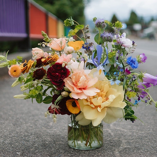 Please choose a color palette and include a personalized note for the small card that will be included. Delivery costs range from $5 to $40 for most of Whatcom County and parts of Skagit (No more than 40 minutes for Bellingham). Please select the corresponding delivery charge to the area in the check-out process.